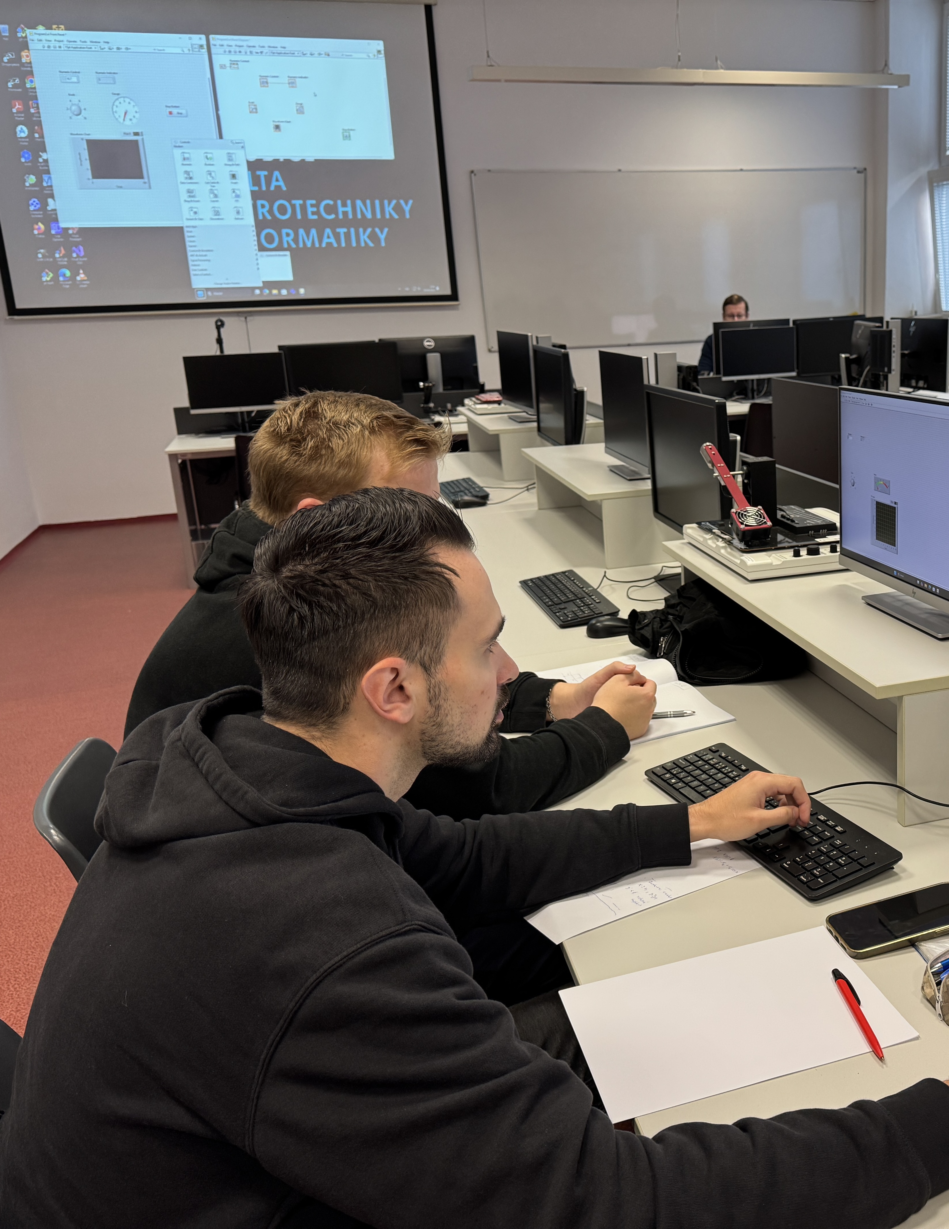 The Mechatronics Laboratory (room PL102, no. dv. CA 0102 01 022) serves primarily for teaching students in bachelor's and master's degree programs provided by the Department of Automation and Mathematics. There are 26 workstations with special equipment (Quanser and Humusoft CE dynamic systems) and software (Matlab and Simulink, SimScape Multibody, LabVIEW).