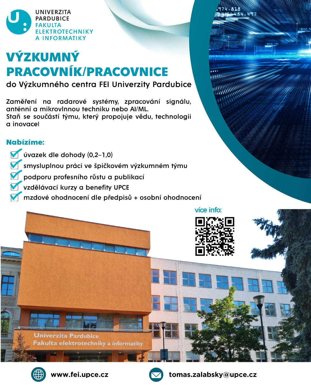 Naše výzkumné centrum se dlouhodobě zaměřuje na aplikovaný výzkum a vývoj technologií v oblastech moderních radarových systémů, zpracování signálů a umělé inteligence. Usilujeme o tvorbu inovativních řešení s reálným přínosem pro praxi.